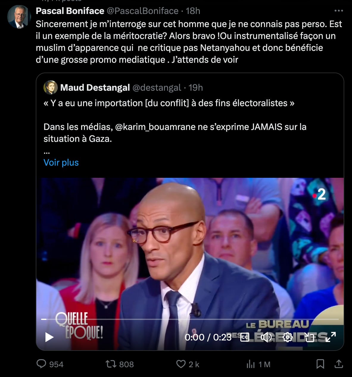 En réponse à ces propos, Pascal Boniface a manifesté, via le réseau social X, son scepticisme quant au parcours de l’élu. « Sincèrement, je m'interroge sur cet homme que je ne connais pas personnellement. Est-il un exemple de la méritocratie ? Alors bravo ! Ou instrumentalisé façon un muslim d'apparence qui ne critique pas Netanyahou et donc bénéficie d'une grosse promo médiatique. J'attends de voir », a-t-il déclaré.