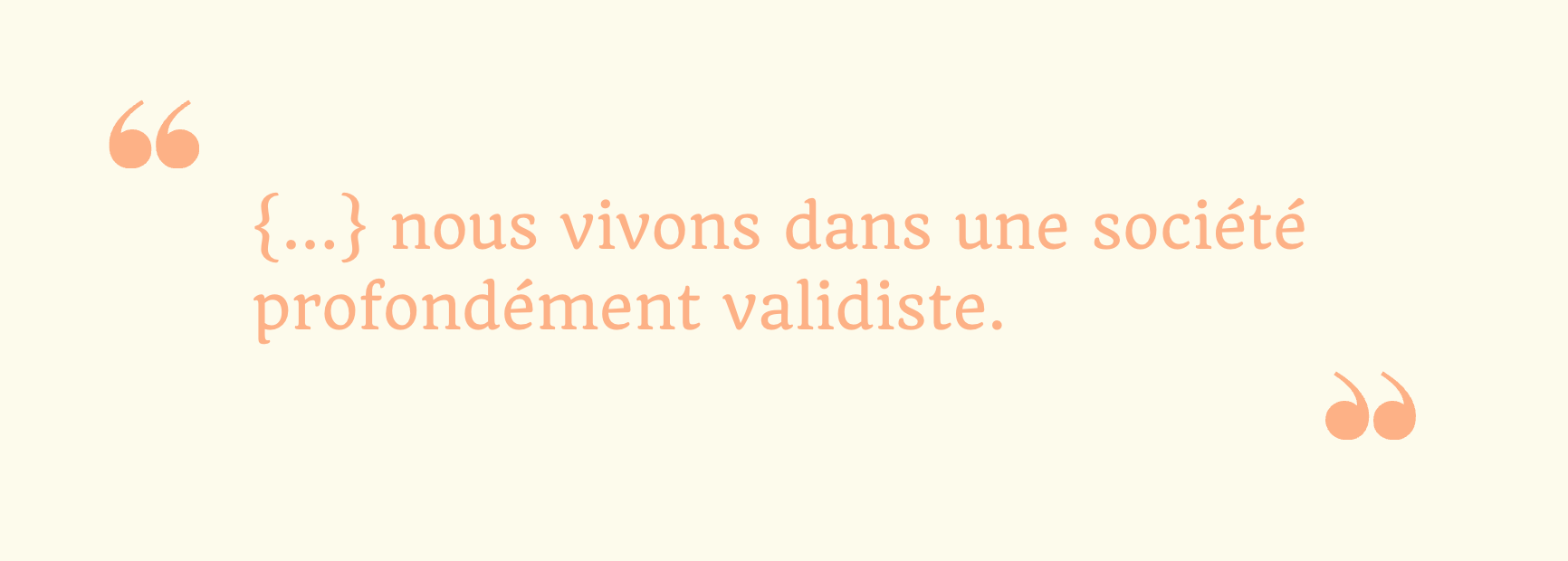 Mathys Dupuis : Je fais généralement preuve de davantage de nuance mais, oui, force est de reconnaître que nous vivons dans une société profondément validiste.