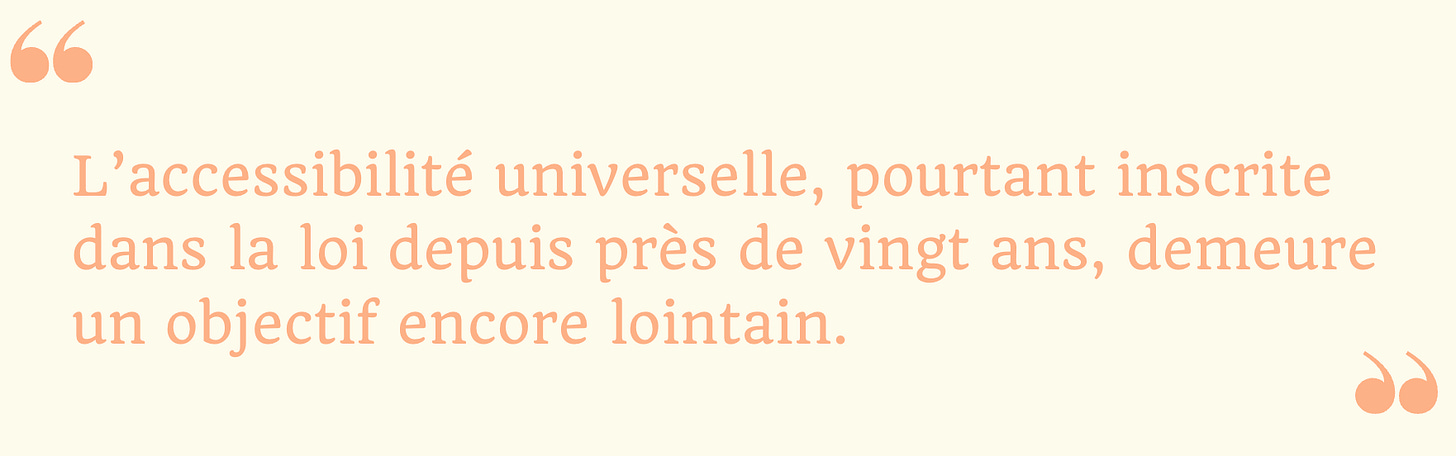 L’accessibilité universelle, pourtant inscrite dans la loi depuis près de vingt ans, demeure un objectif encore lointain.