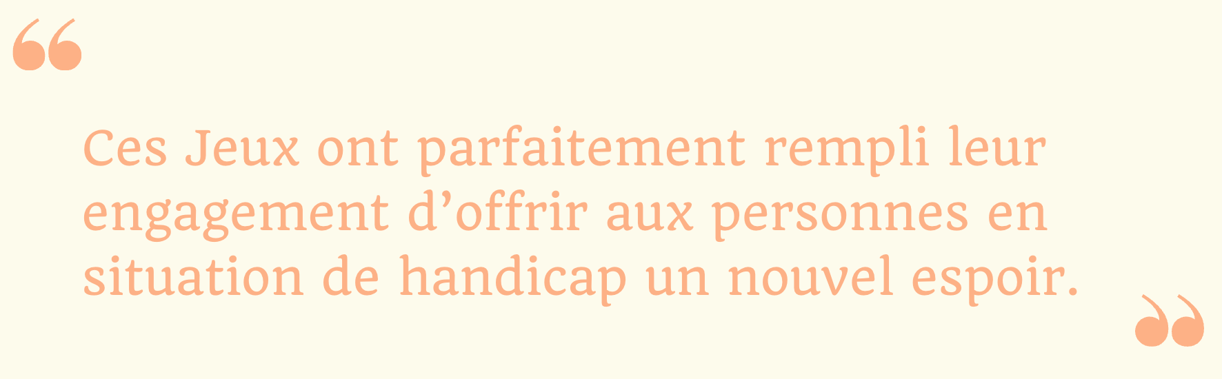 Ces Jeux ont parfaitement rempli leur engagement d’offrir aux personnes en situation de handicap un nouvel espoir.